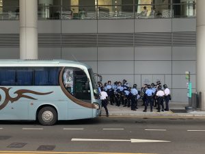 【14:00】防暴警借機將在場記者趕離一號客運大樓,並在客運大樓與巴士總站之間「form the line」,拒讓記者重返客運大樓內採訪。