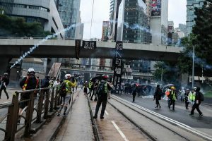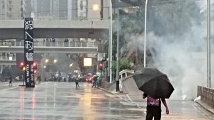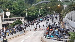 【17:07】警方多次在金鐘施放催淚彈,港島遊行示威者向灣仔撤離,部分往半山方向行走
