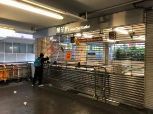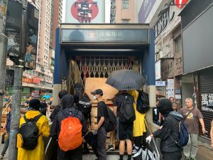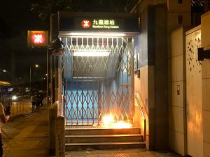 【18:37】長沙灣港鐵站遭示威者破壞縱火