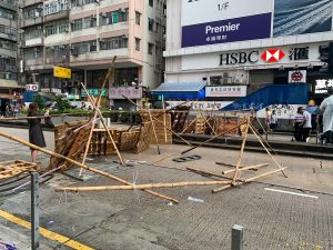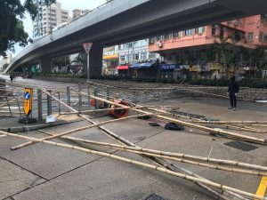 【16:45】西洋菜北街與界限街交界,示威者搭起竹路障