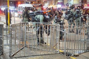 【19:14】銅鑼灣鵝頸橋防暴警察再施放催淚彈,多名途人叫罵。防暴警察其後撤退