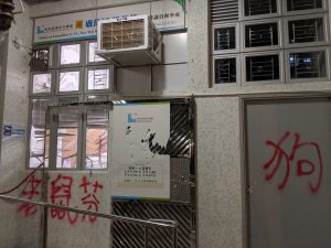 【19:44】工聯會黃國健及何啟明辦事處位於黃大仙橫頭磡邨的議員辦事處被破壞