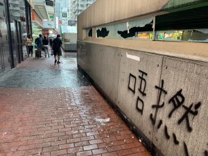 【14:19】佐敦彌敦道上,優品360遭示威者塗鴉