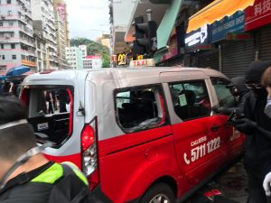 【19:16】再有的士撞上深水埗福華街行人路,未知有無人受傷