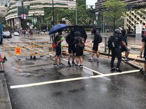 【14:56】海富橋已封,橋上記者被驅趕,防暴警員表示中信橋稍後亦會封閉,示威者在夏慤道亦已架起路障