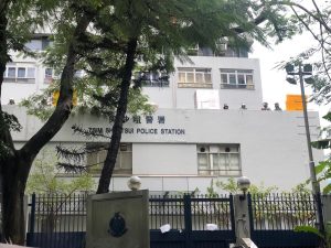 【18:35】旺角警署外,防暴警察清理路障